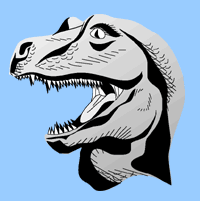 Now, here's the same dinosaur head, but I've matted the transparency against the correct background color for the page, #99CCFF. See how the halo has disappeared?